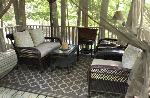 Perfect cottage for your Lake George stay. The beach is right across the street. Location, Location, Location. Located in quaint Bolton Landing just outside of Lake George Village. Large deck with outdoor dining, gazebo with tv to enjoy outdoor living. Gas grill, beach chairs, and kayaks (4) included. Air conditioning for the warmer days. 1 bedroom with and queen bed and a loft that sleeps 4. Sleeps 6 people comfortably. 55 inch tv in the living room with Roku for streaming cable, Netflix, Hulu etc.