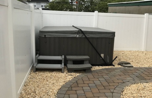 5 bedrooms + finished basement with 4 futons and bath for kids. Hot tub, bbq, large decks, close to beach, restaurants and amusement attractions driveway for 3 cars. Beach badges , beach locker outdoor shower