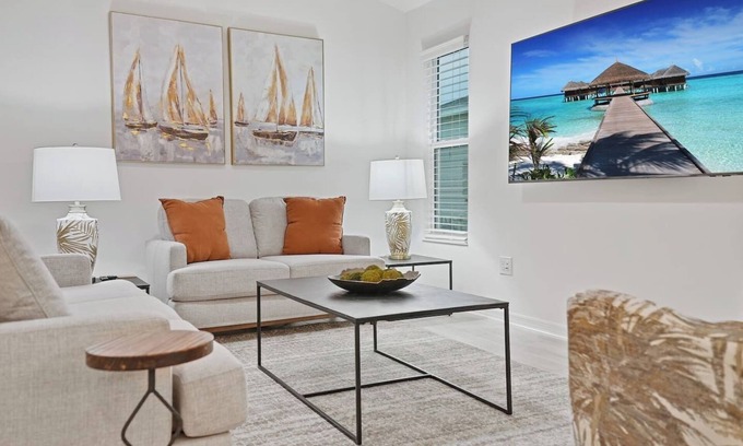 Enjoy a stylish experience at this brand new, centrally located upscale home we call The Sanctuary! Enjoy a brand-new spacious home with stylish furniture, comfortable beds, and an excellent location. Equipped with bikes, a golf cart and portable chairs for those nights at the square enjoying live entertainment, what more could you want?