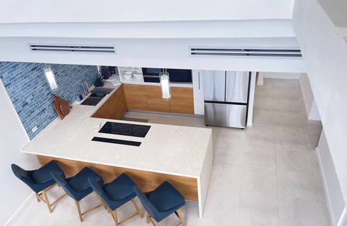 Villa Paradise is situated on a gently sloping waterfront site along the resilient corridor, offering breathtaking views of the natural harbor of Montego Bay and the Freeport Hotels. Located in a secure, gated community with 24-hour security, it's just a 15-minute drive from Donald Sangster International Airport. Designed by Atelier Vidal Architects, this luxurious villa spans 5,000 square feet combined, and features the highest quality fittings and furnishings. The villa's architecture seamlessly connects the indoors with the outdoors, and parking is conveniently available beneath the building.