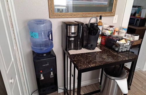 There are a full five bedrooms in this ample house, with a king bed in the master bedroom, and three queen beds ensuring plenty of room for up to 9 guests. There's a cozy front room with comfortable furnishings, a well-stocked kitchen, and two full bathrooms.