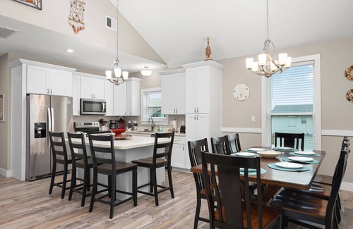 This retreat is the perfect location to relax and gather with family and friends. When not adventuring at the beach, take some time to enjoy fishing off the neighborhood dock at the covered pavilion, play a competitive game of Cornhole, or fire up a good meal on the gas grill.