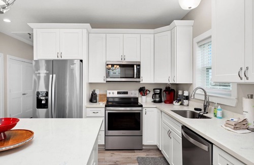 Kitchen - Stainless steel appliances; quartz countertops; large island with seating for 4, Keurig