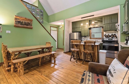 Step inside and be captivated by the cabin’s unique features, including a Pennsylvania Amish-made kitchen island and an entertainment stand. The cozy living area, adorned with log furniture and a fireplace, creates a warm and inviting atmosphere for unwinding after a day of adventure.