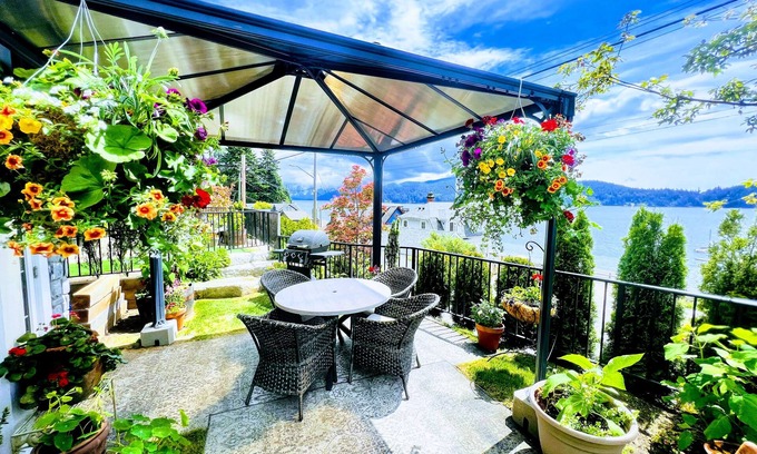 Beautifully located home with Ocean side garden suite in Granthams Landing, Gibsons. Directly across from the ocean and our Historic wharf. Five minute drive from the ferry and 30 seconds to set foot on our wonderful beach and wharf! Enjoy sweeping views of the Ocean, Mountains and Keates Island from your suite and outdoor leisure area. Hot Tub. Catch the correct tide and have a leisurely walk into historic Gibsons Landing. Close to local trails, restaurants and wonderful local merchants.