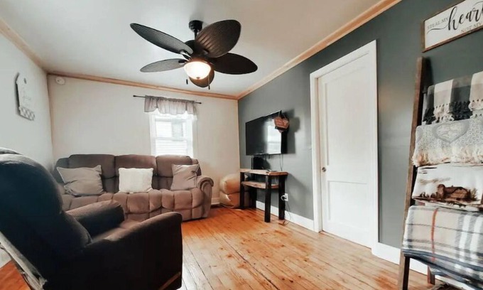 Brickfront Cottage is perfect for your all-season Vacation rental! We welcome you to a full farmhouse style cottage and 2,510 sqft driveway. Ski & hiking trails and snowmobile trails are close, local park is a cross the street. Play in the leaves and enjoy a cup of hot cocoa and a warm bath, grab a cozy throw blanket and relax on Brickfront's cozy screened-in porch and warm up! Brickfront is close to nearby wedding venues enjoy this cute little Cozy sitting area with a complimentary coffee bar.