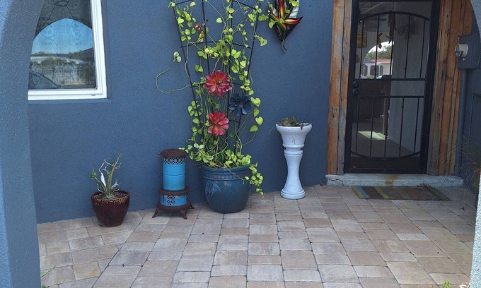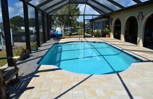 Escape to this delightful studio apartment with water views in beautiful Port Charlotte. This cozy space features amazing indoor and outdoor living spaces. Comfortably sleeps 4 with a queen size murphy bed and a sofa bed, perfect for a family or a small group of up to 4 guests. Enjoy the peaceful and beautiful surroundings. Indoor amenities include 55" smart tv remote controlled AC/heat, free WiFi a nice kitchenette with table and 4 chairs, refrigerator, microwave, crock pot, electric skillet and coffee maker. The beautiful bathroom is equipped with a shower and hair dryer for your convenience. The outdoor living is where its at in this apartment. Enjoy the heated pool catch a tan on the outdoor recliners, get out of the sun in your large covered screened Lanai with a sofa and comfortable chairs, smart tv, bluetooth speakers to enjoy your music, fishing dock and grill to cook your catch and outdoor dining. Plenty of storage for your kayaks or bikes. Read a book in the front patio and enjoy all the tropical plants, palms and Florida wildlife. Want to get out and explore? We are centrally located, close to amazing restaurants and 2 miles from the luxurious Sunseeker resort where you can enjoy fine dining or a spa day, Beaches are a 30 minute drive and we offer loaner beach chairs, towels, umbrellas and coolers. There is so much to explore and so much wildlife to see in Charlotte Harbor, including dolphins, manatees, rays eagles, birds and some of the best fishing in the world. We do live on the property with 1 cat in our own home and share the outdoor lanai and pool but are very respectful of our guests privacy. We hope you'll enjoy your stay at Casita Canal!