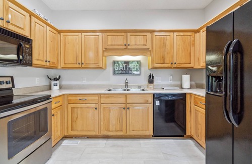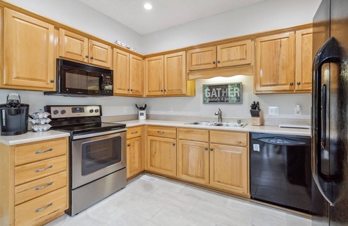 Fully Equipped Kitchen: Whether you’re whipping up a quick breakfast or preparing a family feast, the kitchen has everything you need – cookware, utensils, a microwave, stove, refrigerator, and more.