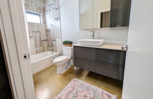 Welcome to Cactus House! Our groovy 4 bedroom, 3 full bathroom home in the heart of East Austin equipped with a hot tub, stock tank pool, murals, a cute cactus garden, and so much charm! The house also has two TV's, wifi, ample private outdoor space, and carport for two compact cars.