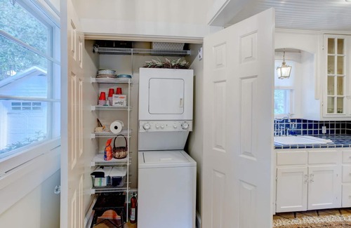 Quintessential cottage in Mount Dora! This private residence lives BIG. Picket fence welcomes you into cozy Hummingbird cottage with light filled rooms & hardwood floors throughout. Comfortable living room has 50 inch LED Smart TV & Den is the perfect place to read or enjoy a glass of wine. Spacious bedroom has queen bed & walk in closet. Bathroom has tub w/shower. Enjoy meals in the dining room, kitchen has new appliances and laundry closet! One car garage & large lot with mature and private landscaping! Long term stays are welcome!