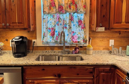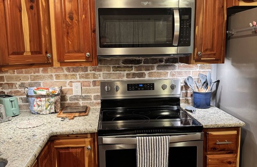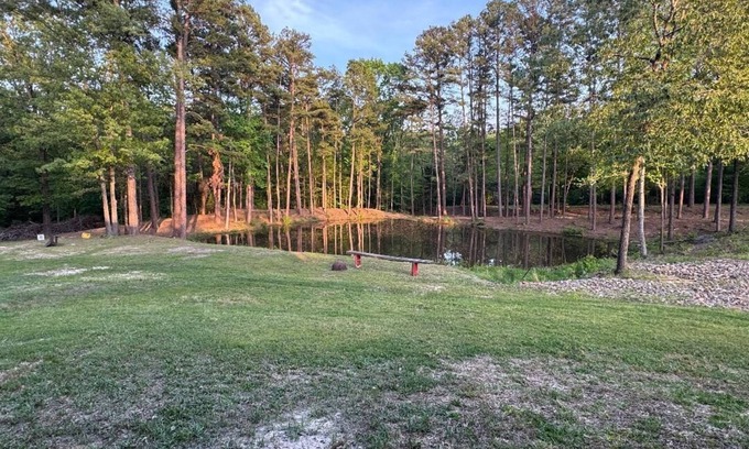 Experience Mineola like a local in this 1-bedroom ( Queen bed) house. Enjoy the beautiful living room with 1 sofa bed, perfect for relaxing after a day of exploring the historic downtown Mineola. Access to beautiful woods and a pond for fishing. This brilliant property offers heating, AC, a washing machine, dryer and WIFI for your convenience. Covered porch with 75" TV overlooking a spring fed pond. The porch provides a pellet grill , gridle and solo stove to enjoy the cool evenings and relax after a fun day of shopping. Lake Fork is just 25 mins down the road with access to fun parks and lots of sight seeing. Plenty of parking for boats, and larger vehicles.