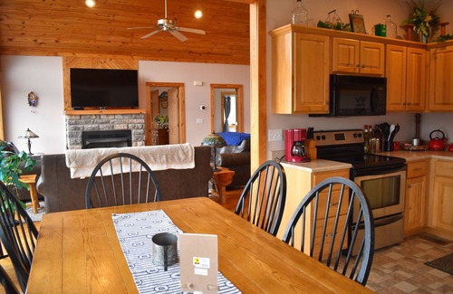 Nestled in the rolling hills of Lake Cumberland Resort, M&M’s Lake Retreat offers the perfect blend of comfort, style, and outdoor adventure. This charming 4-bedroom, 3-bathroom chalet has plenty of space for your family or friends. The home boasts hardwood floors, vaulted ceilings, and a cozy gas fireplace. You can comfortably accommodate up to 9 guests, making it perfect for gatherings. Whether you’re planning a family getaway or a trip with friends, M&M’s Lake Retreat will provide an unforgettable experience.