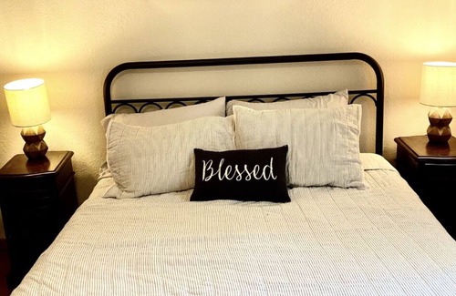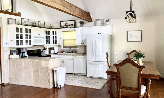 Welcome to our beautiful lake property, nestled on the stunning area of Eufaula. Our home is the perfect getaway for those seeking a serene and tranquil escape from the hustle and bustle of everyday life.The house boasts breathtaking lake views and is surrounded by lush greenery, creating a peaceful and idyllic setting for your vacation. With ample space to comfortably accommodate up to 8-10 guests, our home offers the perfect blend of modern amenities and rustic charm. The living room is perfect for relaxing with loved ones, while the kitchen is fully equipped with everything you need to whip up a delicious meal. Our lake property offers plenty of outdoor activities - drive down to the beach, go shopping in town, rent a boat from the local marina, enjoying a quite walk or hike. The expansive deck is the perfect spot to catch some rays or just relax and take in the serene surroundings. In the evening, gather around the fire pit and toast some marshmallows while enjoying the peace and quiet of the lake. For those who prefer indoor activities, there are plenty of options available as well - board games, books etc. Whether you're planning a family vacation, a romantic getaway, or a weekend with friends, our lake property offers something for everyone. Book your stay with us today and experience relaxation and tranquility like never before!