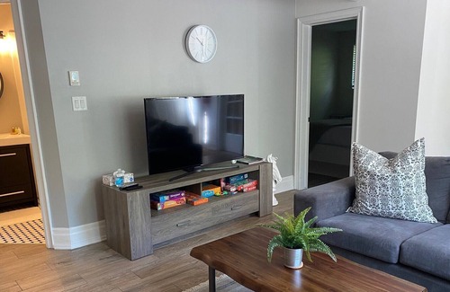 bathroom with walk out to deck. We have a washer/dryer for your use, heating/AC, 4 t'vs with Netflix, WIFI, IPTV as well as all