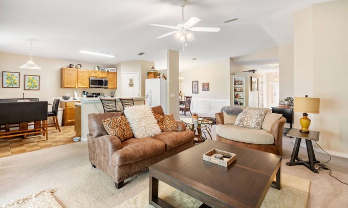 This 3 bedroom 2 bathroom home has an extremely comfortable king bed & 2 queen beds. There is plenty of space to bring a blow up mattress as well.