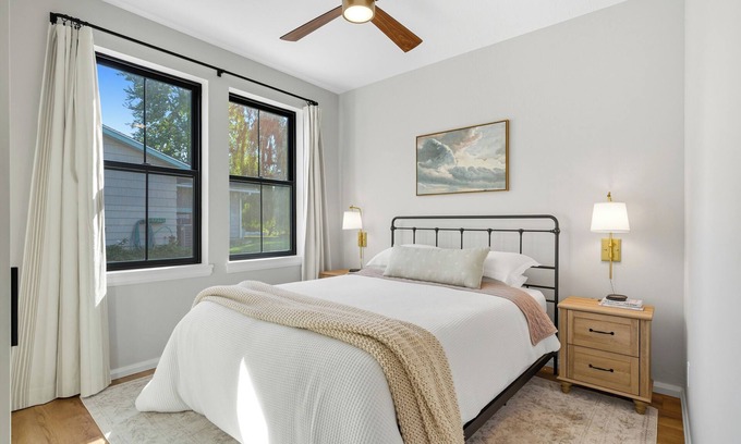 Guests share the driveway, yard, dock, and playground with our family. Parking is simple—you’ll see a white and black “Guest Parking” sign on the left side of the driveway. To access the suite, follow the path under the porch, just past the garage door. We’ve designed the entry to be straightforward so your arrival is as stress-free as possible.