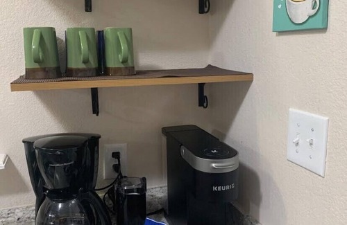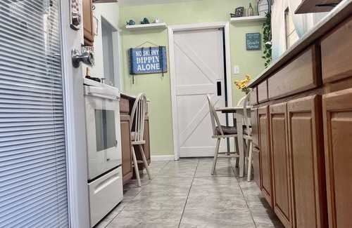 Enjoy your vacation in this cozy little 900 square foot 1 bedroom 1 1/2 bathroom home. Here you will find 2 comfy beds in the bedroom and a sofa that folds out into a full sized bed. A well equipped kitchen, large fenced in backyard, covered back patio, plenty of parking for your vehicles, boats, toys and more! There are plenty of restaurants, stores and shopping within walking distance. Sorry, no animals/livestock or pets of any kind are allowed in the home or on the property.