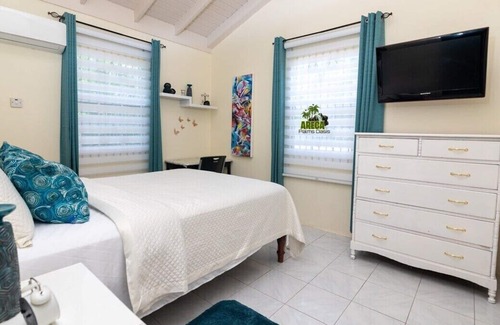 The villa boasts two luxurious bedrooms, each exuding Caribbean charm and equipped with plush bedding to ensure a restful night's sleep. The bedrooms offers excellent garden views ,where you also opt to savor your morning coffee while basking in the gentle caribbean breeze. The bathroom is elegantly appointed, featuring modern fixtures and indulgent amenities.