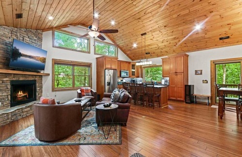 Convenient. Comfortable. Elegant. Rustic. Beautiful. Nestled between the towns of Boone and Blowing Rock, this wonderful 4 bed/2.5 bath cabin is the perfect base camp for your adventures in the High Country! This gorgeous cabin can accommodate up to 9 people (6 adults+2 kids in bunk room + a pack n play for an infant). Relax in the hot tub while enjoying the peaceful mountain air, play ping-pong or a board game, or get cozy by the fire-place with a book. This property has everything you need for your mountain retreat.