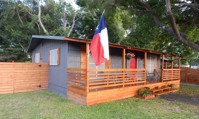 Welcome to Ski D's! A charming cabin in a Lake side community. We are 10 miles to Schlitterbahn, Gruene, and the Guadalupe and Comal rivers in New Braunfels. We have a fenced backyard for your furry friends (add'l fee, limit of 2 dogs under 25 lbs) as well as all the amenities of home.
