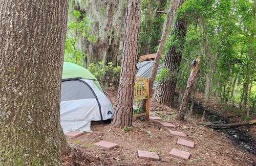 Nestled on a peaceful, 0.76 acre sanctuary in Brunswick, Georgia, the 99 Retreat, offers a cozy off grid, glamping experience rooted in rest, nature, and wellness. Whether you're seeking a solo reset or a rustic Retreat With friends, this space invites you to unwind and reconnect. I currently have the tent set up for one person but can accommodate up to 3 people. let's work it some arrangements, We can have small events as well.