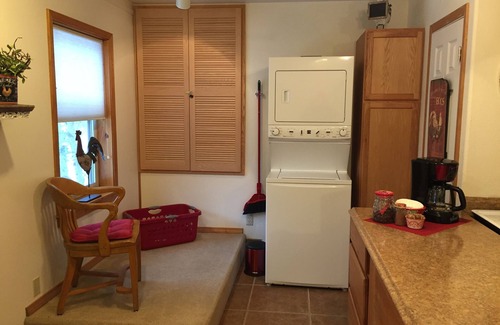 The bright and sunny Ago Gallery Loft is a sparkling clean second-floor apartment with its own private entrance. The entire floor is yours! The Loft features 2 bedrooms (two queen beds/one king bed), one bathroom, kitchen and spacious living room. Other features include: Internet, iron and board, hair dryer, swamp cooler/heating and laundry center.