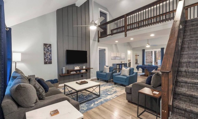 Best-rates for the Branson cabin starts from $613 per night with includes Internet, Parking, Pool, Kitchen, Laundry, Air Conditioner, Sports/Activities, Bedding/Linens, Fireplace/Heating, Child Friendly, TV, Balcony/Terrace, Security/Safety, Entertainment, Barbecue/Outdoor Cooking StayAndPlay offers fully equipped golf villas, golf hotels, golf resorts, luxury golf cabins, and exclusive golf retreats, making it easier than ever to find your perfect golf escape — ideal for families, peaceful getaways, or pet-friendly retreats with the whole crew.