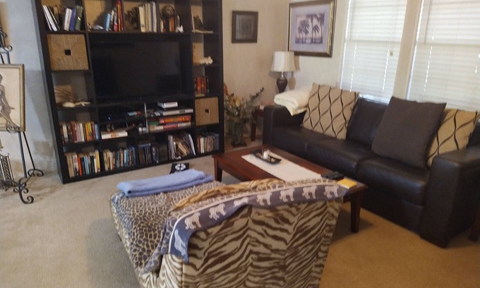 This 2-bedroom, 1.5-bathroom rental features a dining area, a BBQ grill, and air conditioning. Bathroom amenities include a hair dryer, towels, and toilet paper. Prepare a home-cooked meal in the kitchen, complete with an oven, a stovetop, and a refrigerator, as well as a coffee maker, an electric kettle, and an ice maker. And because there's a washer and dryer, you can go a bit lighter on your packing.