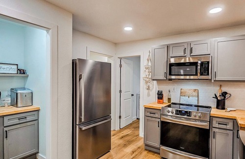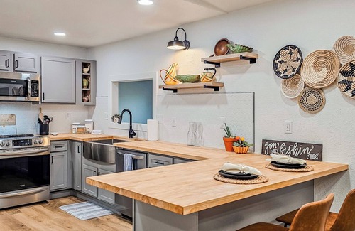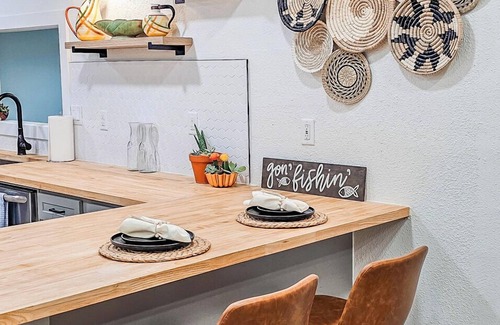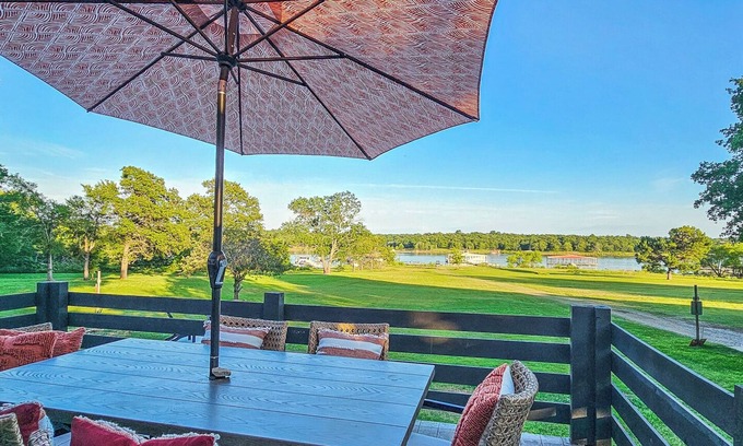 Behold The Duchess Den, your very own slice of paradise in Porum Landing | Duchess Creek. With an exquisite 4-bedroom, 2-bathroom design, this place is more than just a house - it's a "wow" experience for up to 9 lucky guests. Step inside and prepare to be dazzled by the chic decor and meticulous detailing. The fully-furnished kitchen and dining space are just waiting for you to create culinary masterpieces. And did we mention the breathtaking lake views and direct water access? Spoiler alert: it's pretty amazing. Accommodations? We've got them in spades. Our master bedroom is the stuff of dreams, complete with a king bed, ensuite bathroom, double vanities, and a spa tub. It's perfect for those post-lake lounging sessions. The other three bedrooms? Equally fabulous, each with unique features that cater to your every need. The interior screams modern bohemian chic with a side of comfort. Think open-concept kitchen with a bar, a dining table for four, and a fully-equipped kitchen. But wait, there's more! Our living room has a sectional sofa and a convertible coffee table, perfect for those impromptu dinner parties or game nights. And did we mention the play area for the kids? We've thought of everything. The outdoor space? Let's just call it your personal oasis. With an expansive deck, a gas grill (propane included), fire pit, and ample seating, it's the perfect spot to relax, dine, and enjoy the lake views. During your stay, we've got you covered with free Wi-Fi, Smart TVs, and even an air hockey table for the competitive spirits. And if you're looking for a little extra, we offer additional services like grocery delivery, private chefs, in-home massages and more. The Duchess Den | Porum Landing is your ultimate destination for unforgettable vacations. So, why wait? Book now and let the adventure begin! PS: We've got two Ring cameras for added security, and a starter supply of necessities to ease you into your vacation. Enjoy!