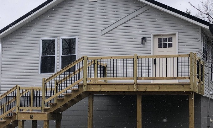 Enjoy your days seeking new adventure and your nights relaxing on the large back deck. You will have full access to the entire main floor of the duplex, which includes a living area, two bedrooms, a bathroom, and kitchen. The kitchen is fully stocked or there are plenty of restaurants to choose from nearby. You are sure to get a good night sleep on the brand new mattresses and the bedrooms have 32in TVs with cable.