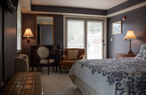 After an exciting day of exploring the area, guests can enjoy comfortable and spacious accommodations with unbeatable amenities, including a private shower, individual heating/cooling, television, as well as the option to order a Deluxe Breakfast as an add-on. Sitting on 2.5 acres, the property offers beautiful scenic views, an outside kitchen, and an on-site cafe. Each of our 15 rooms offer unique and thoughtfully-appointed comforts that will remind you of home. Rooms are divided between the Main House area, the Carriage House area, and the Suites area.