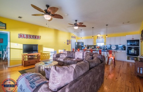 The living room is furnished with comfortable seating and has amazing Rollover Bay views. The open kitchen with breakfast bar is perfect for dining and is equipped with everything you need for cooking full meals or just eating sandwiches. You'll also have access to the oversized laundry room with full size washer/dryer if you find yourself in need of doing "chores", lol.