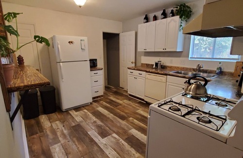 Family friendly house located in a quiet residential neighborhood accommodated with laundry, kitchen necessities, small back deck, propane grill, fenced back yard, children's toys and books, wifi and television with access to streaming services and dvds. Note the garage is not available for car storage.