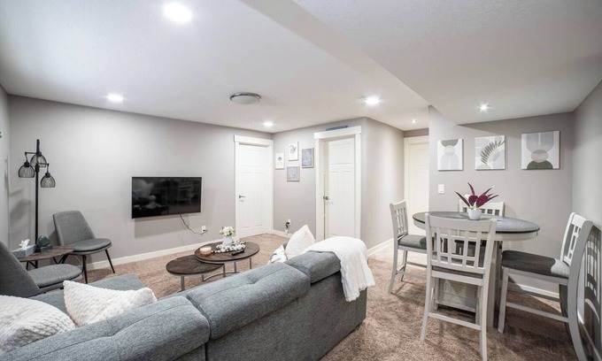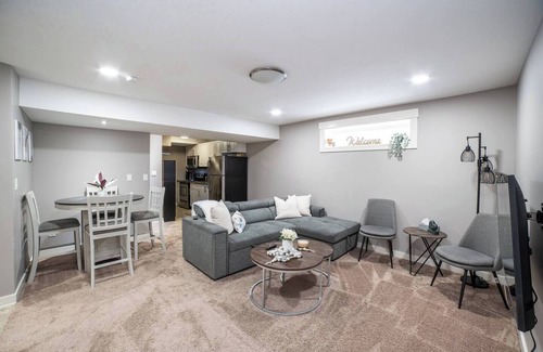 Welcome to the "Robin's Nest". This fresh 1 bedroom lower suite is all you could imagine and more. The kitchen is fully equipped for all your culinary needs. Have a Netflix and chill night in the living room on the cozy couch with a blanket. With amenities just around the corner and shopping nearby, you can make the most of your stay. The Regina Airport is also only 5 minutes away! Short or long stays are welcome. Book now with Infinitebnb!