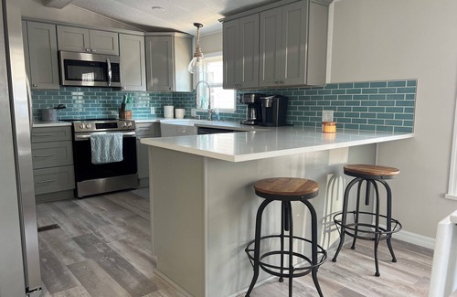 Beautiful and completely renovated! Huge full stocked kitchen with dishwasher, microwave, coffee pot and Keruig! Enjoy a great nights sleep in the king size bed! In unit washer and dryer, large storage area and closet for longer stays.