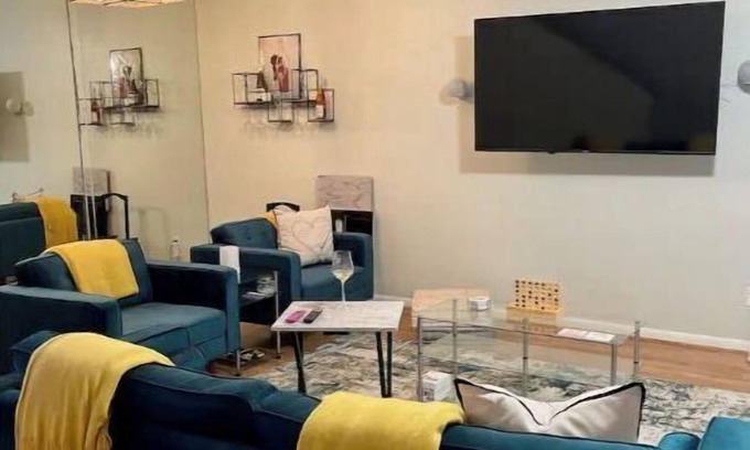 Each room and living room have amazon fire sticks. The half bathroom is located downstairs.