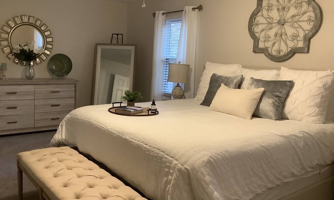 This home is spacious and convenient to both Alpharetta and Cumming. It is beautifully decorated and feels like a home away from home. The secluded cul-de-sac setting is peaceful and private yet just minutes from restaurants, shopping, GA-400 and lots of outdoor recreation. The Master Bedroom features a king sized bed, sitting area and an ensuite bathroom with double shower and double sinks. The kids will adore the adventure room complete with play teepee. The third bedroom features a queen sized bed and neutral styling. If you are relocating to the area we welcome any corporate relocations and long term stays. We are a pet friendly property but we do ask that you contact first for pre-approval with your pets breed, age and temperment. We also do not permit any parties or special events. We are confident that you will enjoy your stay with us. We are available if you have any special needs or concerns. Additionally if you are relocating to the area, I am a licensed real estate. I have lived in Alpharetta for 17 years and would be honored to help any of my guests find their home sweet home!