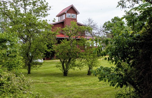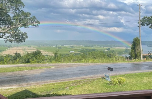 Perched on a cliff, this breathtaking retreat offers views that stretch for miles over the famous oxbow bend of the mighty Ohio River. Surrounded by dozens of private acres, including a stocked pond and hundreds of unique rock formations, the Lodge nestles harmoniously against the backdrop of the Hoosier National Forest, offering a seamless connection with nature. It's a place where the world feels like your backyard. At sundown, the beauty of the sky is indescribable, with the Milky Way's ribbon visible on most nights.