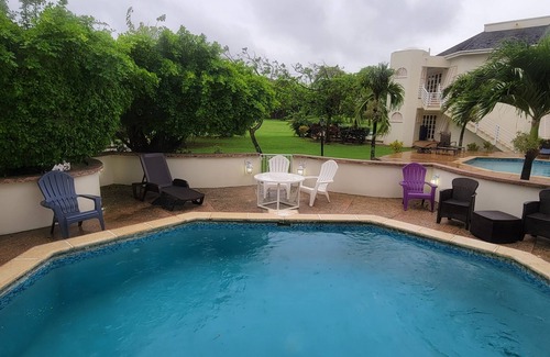 This small piece of paradise is all yours, from the pool to dining, to the pool, to the golf course, to the pool all only a few steps away while you enjoy your piece of paradise. 3 beds and 3 baths, washing facilities and so much more...