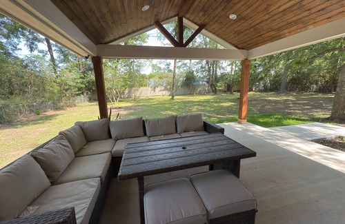 Your peaceful getaway awaits at this lovely 3-bedroom house 2 car garage in Magnolia. With 1 king bed and 1 queen bed 1 full beds, this welcoming home is perfect for families or friends looking to unwind. Enjoy the 2 bathrooms equipped with showers and hair dryers. Experience what Magnolia has to offer with a stay at our house. Just 4 minutes from The Woodlands! Whether you're planning a family stay, relocating, or just need a peaceful escape, this home delivers a cozy atmosphere with modern touches and a backyard big enough for kids. entertaining under the stars. Quick access to FM 1488, 2978, and I-45. Peaceful neighborhood with local park, schools and grocery stores nearby Ideal For Families relocating to the area.Weekend getaways or staycations. Traveling nurses or professional. Long-term renters or short term guests