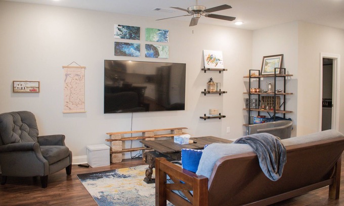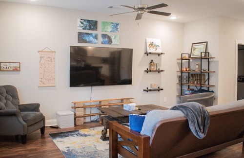 The space is warm and inviting with personal touches from our travels and experiences. Kitchen includes all the cooking equipment and tools you'll need to whip up a meal. Guests have access to a drip coffee maker (regular and decaf coffee provided) and an electric tea kettle (variety of bagged teas provided). Guests can enjoy a variety of board games in the open living room. All TVs are linked with YouTube TV to allow you to catch up on all your favorite shows.