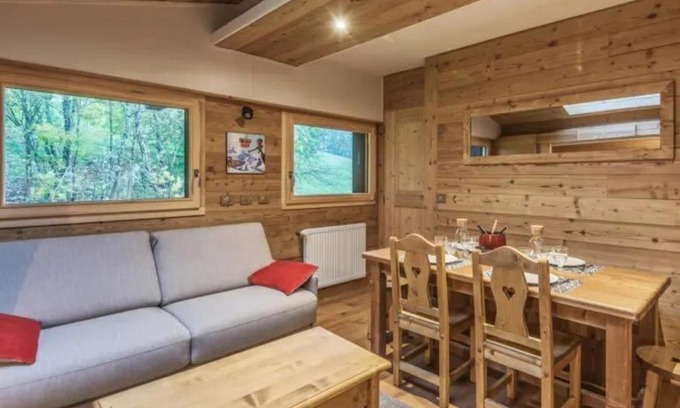 Offering a seasonal outdoor swimming pool, welcoming apartment with swimming pools near the Megève ski slopes provides accommodations in Megève. Complimentary Wifi is featured throughout the property and private parking is available on site. The apartment offers an indoor pool, fitness center, and an elevator. The apartment consists of 2 bedrooms, a living room, a fully equipped kitchen with a dishwasher and a coffee machine, and 2 bathrooms with an a bath or shower and a hair dryer. Towels and bed linen are available in the apartment. The accommodation is non-smoking. For guests with children, the apartment features kids pool. Skiing and golfing can be enjoyed nearby, while ski-to-door access and ski storage space are also available on-site. Halle Olympique d'Albertville is 22 miles from welcoming apartment with swimming pools near the Megève ski slopes, while Skyway Monte Bianco is 30 miles away.