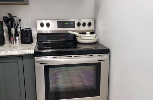 Enjoy a home cooked meal in the fully equipped kitchen with brand new appliances, cooking and eating utensils, and fully stocked pantry supplies. Feel free to pack light and wash and dry your laundry the brand new LG smart washer/dryer.
