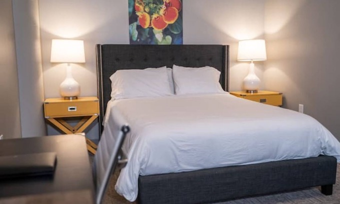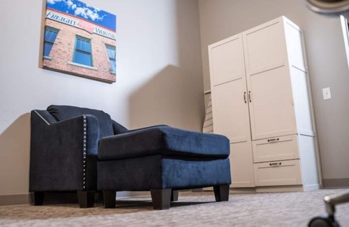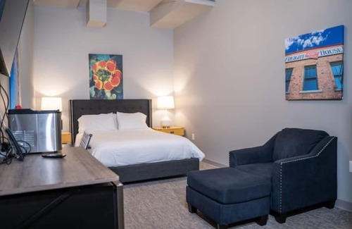 Located in Davenport just steps from the Mississippi River, this modern suite with a Queen bed boasts amenities such as a fitness center, game room, theater room, courtyard with a grill, rooftop deck, smart TV, and WiFi! We’re nearby the city’s best breweries, coffee shops, restaurants, Palmer College, St. Ambrose University, The Village of East Davenport, Modern Woodman Park, The Adler Theater, Figge Art Museum, and Vander Veer Botanical Park, come see what Downtown Davenport has to o