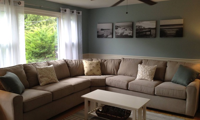 4 bedroom, 2 bath home with A/C just .5 miles to Kelly Beach (easy, mostly flat walk - ideal for families with small kids). 3 BR/1 BA, living area, and kitchen on main level, updated with new floors, and a finished basement with family room, 1 bedroom, and 1 full bath. In addition, you'll have all the comforts of home including BBQ grill, 2 flat screen TVs, a DVD player, wireless internet, washer/dryer, dishwasher, ceiling fans in every room and ample parking. Outside enjoy the deck, outdoor shower, and private yard as well. Renters should bring their own sheets, towels and bath mats.