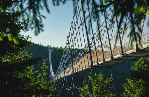 Offering barbecue facilities, Wellness chalupa Šindelka offers accommodations in Králíky. This property offers a private pool, free Wifi, and free private parking. Guests can use the spa and wellness center with a sauna, hot tub, and open-air bath, as well as a garden. Featuring a terrace with mountain views, this vacation home also includes a flat-screen TV, a well-equipped kitchen with a dishwasher, an oven, and a microwave, as well as 2 bathrooms with a hot tub and slippers. This vacation home is non-smoking and soundproof. For guests with children, the vacation home features an indoor play area, outdoor play equipment, and a baby safety gate. A water park is available on-site, and both skiing and cycling can be enjoyed close to Wellness chalupa Šindelka. Polanica Zdroj Train Station is 29 miles from the accommodation, while Museum of Paper Velké Losiny is 22 miles from the property. Pardubice Airport is 55 miles away.