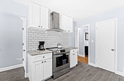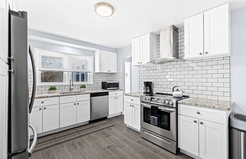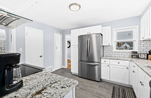 Beautifully renovated and eloquently furnished on the West side of Ann Arbor; Your group will be close to everything when you stay at this centrally-located 4 bedroom, 3 bath single-family home with garage parking for two vehicles. Only a 5 minute drive to downtown and a 7 minute drive to the stadium. The surrounding area has many shopping, grocery and restaurant options for all your needs. Fenced in dog run in the backyard! No cats. This property features security cameras around the exterior of the home.