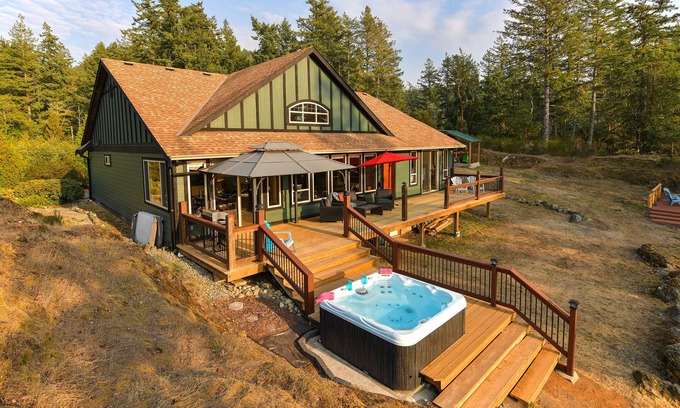 Best-rates for the Sooke house starts from $300 per night with includes Fireplace/Heating, Internet, TV, View, Security/Safety, Spa, Barbecue/Outdoor Cooking, Hot Tub, Laundry, Pet Friendly, Bedding/Linens, Bar, Kitchen, Parking, Pool, Oceanfront, Wellness Facilities, Child Friendly, Ocean View, Balcony/Terrace StayAndPlay offers fully equipped golf villas, golf hotels, golf resorts, luxury golf cabins, and exclusive golf retreats, making it easier than ever to find your perfect golf escape — ideal for families, peaceful getaways, or pet-friendly retreats with the whole crew.