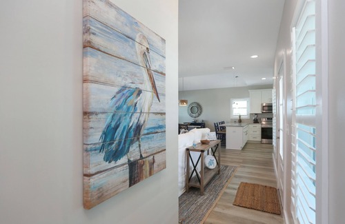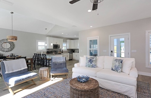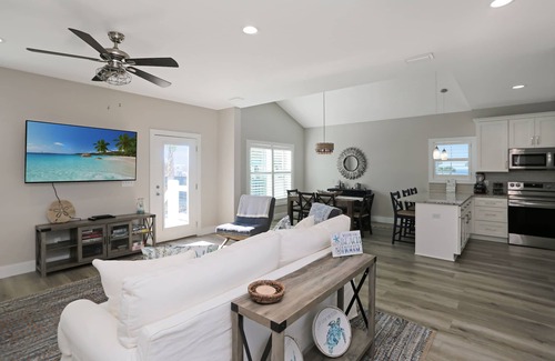 Open concept on the main floor with coastal decor invites you in. After a fun day on the beach, gather in the living room to watch TV or play board games. The dining area accommodates 6 comfortably while the kitchen is spacious with everything you would need to cook meals during your stay. Features