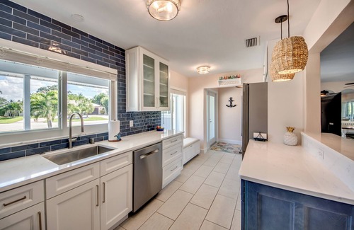 Villa Santa Rosa is located in the PRIME Yacht Club Neighborhood. One mile from downtown, entertainment district. Direct Gulf access with a 10k boat lift with an opportunity to rent our 24 ft, 2024 Bentley Tri-toon. On the end of a cul da sac road that offers privacy and minimum traffic. Enjoy sunsets in the electric heated pool(you control the thermostat) that faces the western sky. This 3 bedroom 2 bathroom has recently been remodeled, floor to ceiling in every room, including state-of-the art impact windows, doors and sliders. Located within 2 miles of Cape Corals best restaurants, coffee shops, grocery stores. Take one of the four bikes to the Yacht Club Beach, that is 2 miles away.